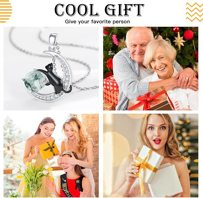 - Material: The black cat necklace is made of 925 sterling silver with moss agate, each piece of moss agate is unique, nickel-free, lead-free, cadmium-free and hypoallergenic, especially suitable for people with sensitive skin