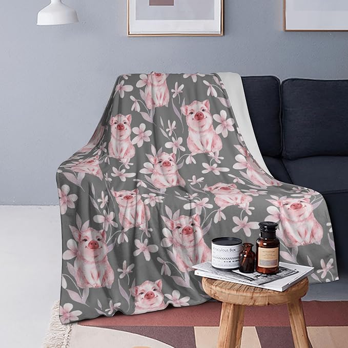 Cute Kids Pink Pigs Print Blanket Throw 50"x40", Plush Flannel Lightweight Blankets, Gifts for Boys Girls