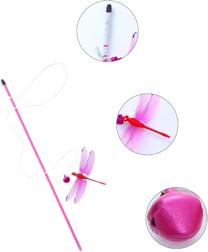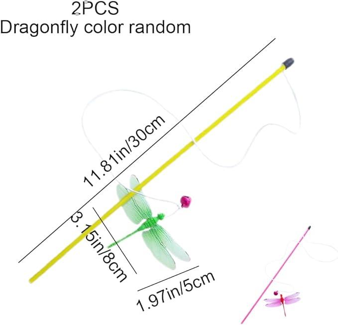 - 【Package Contents】In this package, you will receive two funny cat sticks in different colors. The interactive cat toy design is very unique, each with bells and dragonflies. Note that the color of the dragonfly is random.