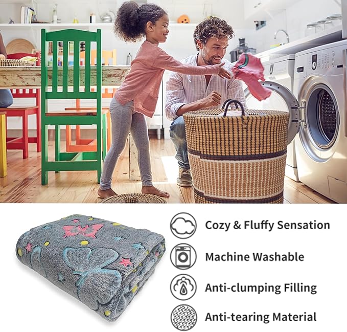 - ππππππ πΏπππππΌππ πππππ ππΏππΌπ: It's a special gifts for all kids butterfly fans. Glow in The Dark Party Supplies, to surprise your children on Valentines, Christmas, Halloween, Easter, Thanksgiving, Birthday or any occasion. Baby girl blanket can be used for bedroom nap blankets, sofa leisure blankets, reading books, outdoor use so on, and being kids most intimate partner.