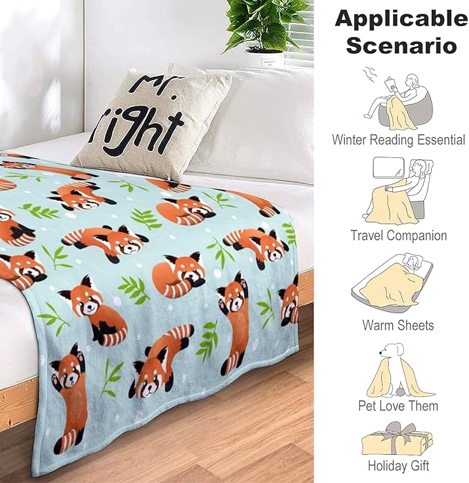 Cute Red Panda Blanket Bedding Soft Lightweight Flannel Throw Blankets for Kids Adults Bedroom Living Room Sofa Gifts 50"X40"
