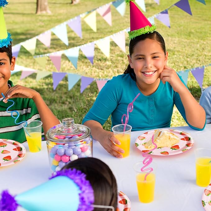 - 【Perfect Creativity】This is a perfect strawberry themed party idea, with a nice design incorporating many strawberry themed elements. With vibrant colors,strawberries print on the supplies,corresponds to the design of the plates and napkins;Vibrant patterns and bright colors create a great atmosphere decorate your party better. It is perfect for your birthday party or summer party, creating the most enjoyable activities for your friends and family, and leaving interesting memories.