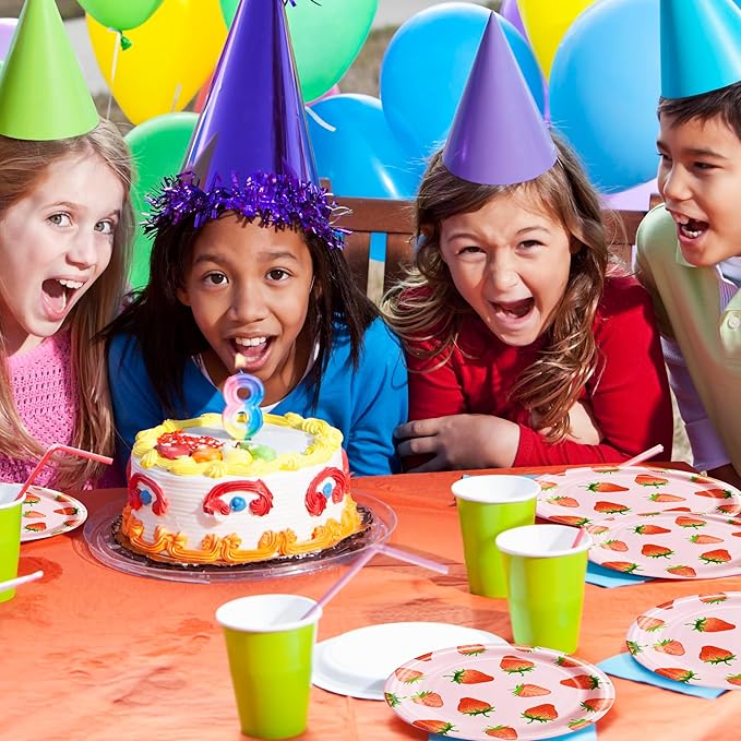 - 【Enjoy the Party, Save Time】Enjoy the party and save time. These strawberry themed party sets are the perfect complement to your birthday party decor. The plates and napkins are disposable, which can save cleaning time after a party. After the party, you can spend more time with family or friends instead of spending too much time cleaning.