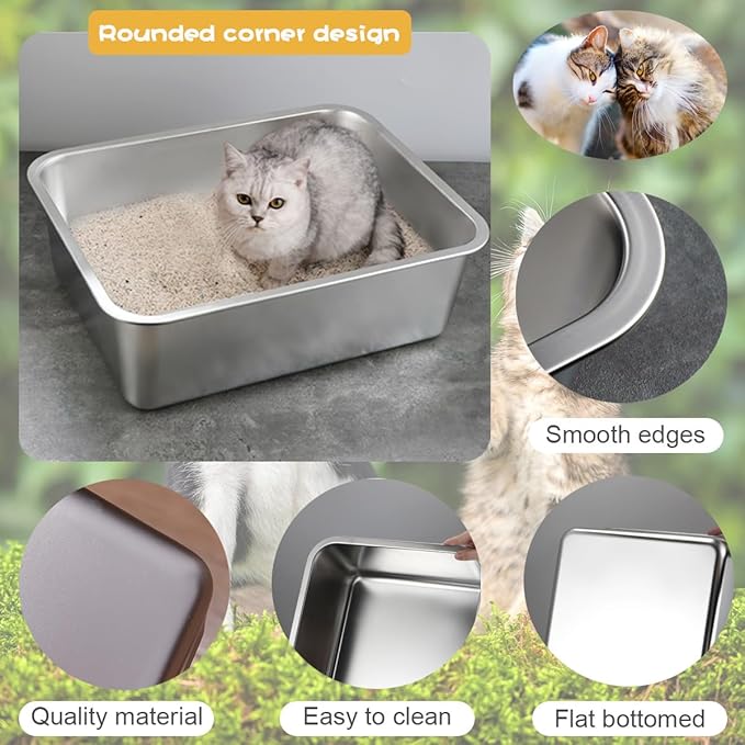 - HIGH-QUALITY MATERIALS:These stainless steel cat litter boxes are made of high quality stainless steel, which are long lasting, rust and scratch resistant. Unlike plastic ones, this stainless steel litter box doesn't cause or retain odors