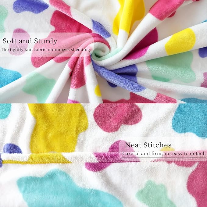 - Soft Blanket Fleece - soft cow print throw blanket are made of flannel fleece which made from microfiber polyester, colorful blanket is softness, warm, breathable and plush. cute blanket brings you comfort and warmth. cow throws is designed to be used on both sides. cute blanket one side is smooth, soft velour, the other side is warm.