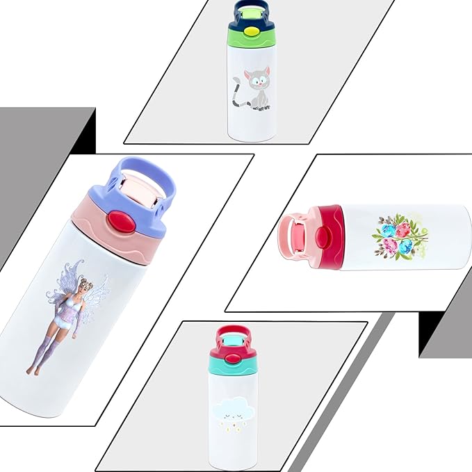 4 Pcs Sublimation Blank Stainless Steel water bottle 12 OZ Straight Stainless Steel Insulated Tumblers Different Color Splash-Proof Lid Shatterproof Water Cup