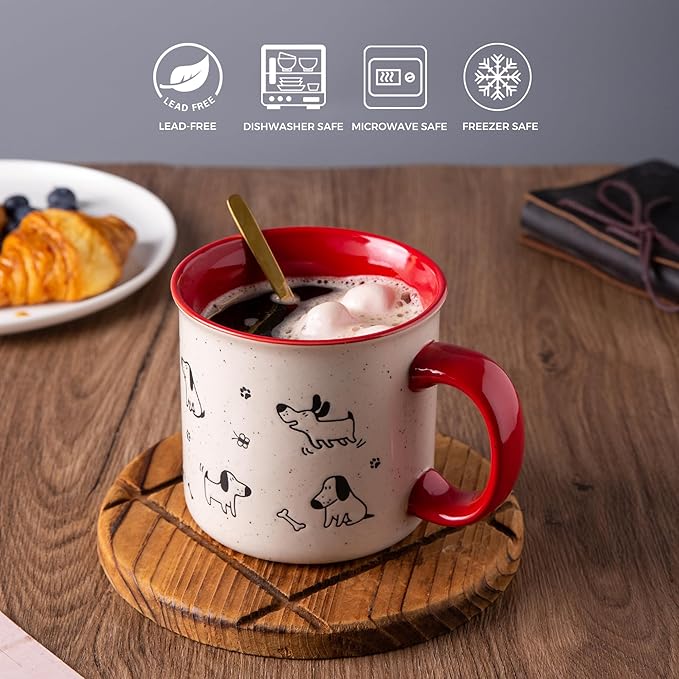 AmorArc 22 OZ Large Ceramic Coffee Mugs Set of 2, Oversized Mugs With Big Handle for Men Women Dad Mom, Big Mug With Textured Dogs Cats Patterns for Office & Home -Microwave Safe, 2 Pcs-Red