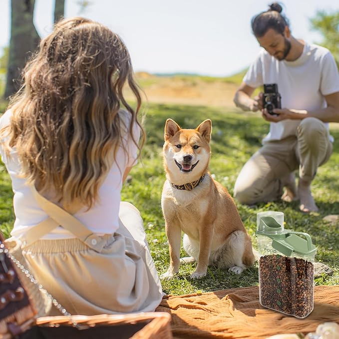 Dog Food Storage Container, Pet Food Storage Containers with Airtight Pour Spout, Cat Food Container with Measuring Cups, Portable Travel Pet Food Container for Dogs, Cats, Birds(Green)