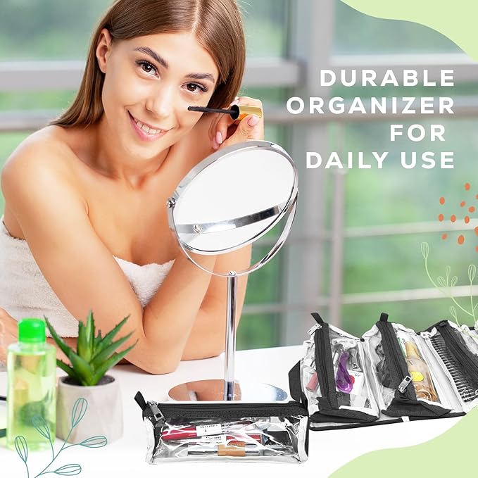 - Space Saver Design- This foldable hanging toiletry bag can store all your travel toiletry essentials giving you more space for your other stuff. Each clear pouch has a large capacity to accommodate necessities. It's a key family travel essential, assuring an organized and minimalistic packing experience.