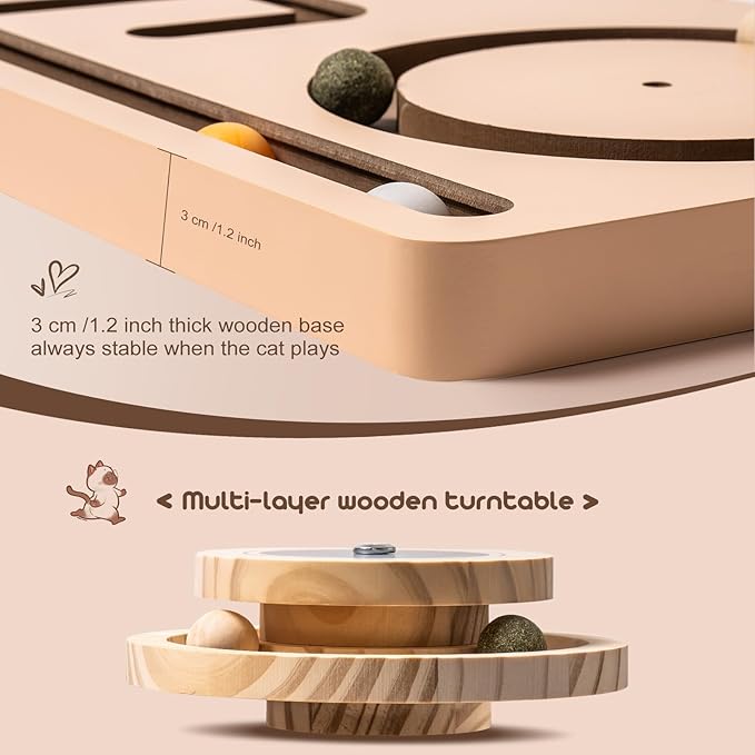 - 3-Layer track:This Interactive Cat Toy is designed with 3levels of tracks and 6 moving balls to attract kitty’s attention! Reduces noise when the ball slides on the wooden track