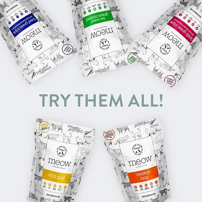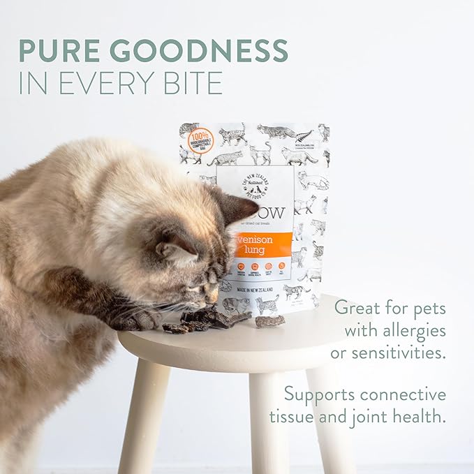 Meow Air Dried Cat Treats - Venison Lung, High Protein, Healthy Cat Snacks and Toppers, All Natural for All Life Stages, 1.76 oz