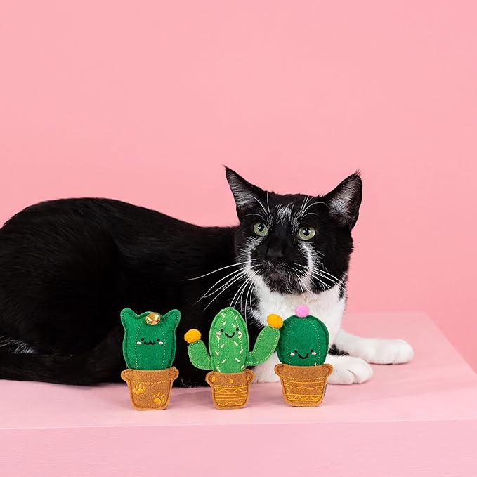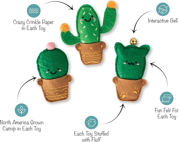 - Perfect for cats of all sizes, Each toy is approximately 4” x 3” ( ROUND CACTUS: 4" x 2.5", ARM CACTUS: 4" x 3.5", EAR CACTUS: 4" x 2")