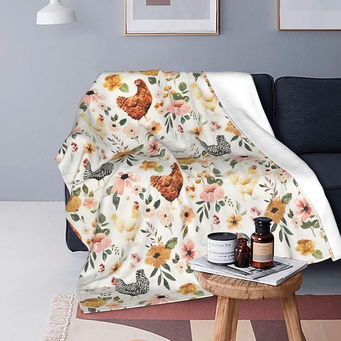Chicken Floral Blanket Rooster Hen Printed Decor Throw Blanket Warm Soft Plush Lightweight Fleece Flannel Winter Blanket Farm Gifts for Girls Women Farmer Lover Boys Baby Kids Couch Bedding 60"X80"