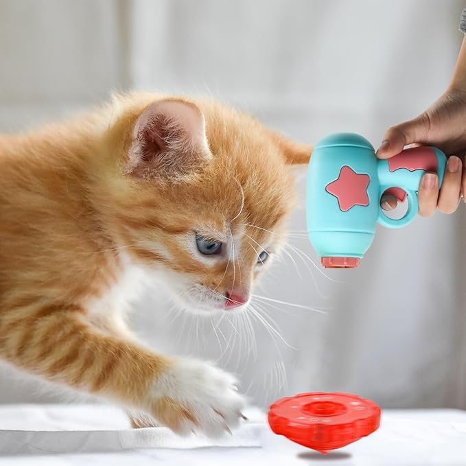 - Package Included: You will receive a set of cat fetch toys, including a helicopter cat toy launcher, 4 colorful flying discs, 1 luminous flying saucer and 1 spinning top. This is a perfect set of cat fetch toys to train the abilities of hunting, patting, tracking and chasing.