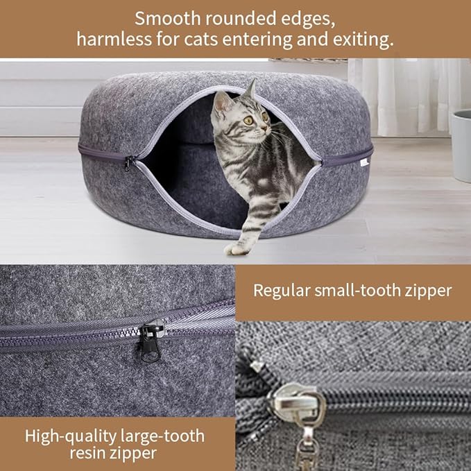 - Premium Felt Comfort - Crafted from handpicked felt material, our cat tunnel bed is a haven of comfort. Its wear-resistant and scratch-resistant nature, combined with the absence of fluffy balls, caters perfectly to your pet's daily scratching and rubbing habits. Versatile for all seasons, this cat bed is the ideal retreat for your beloved companions.