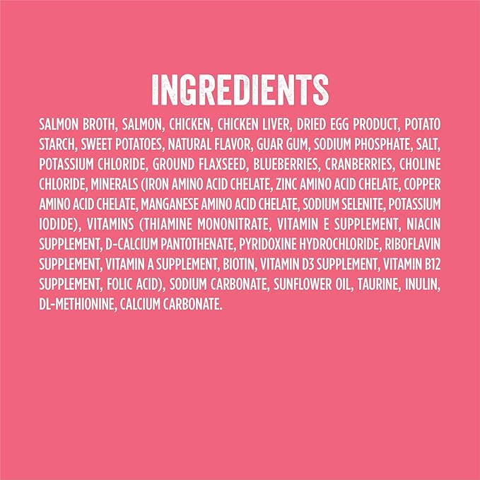 - Super premium wet cat food with tasty salmon and sweet potato flavor.