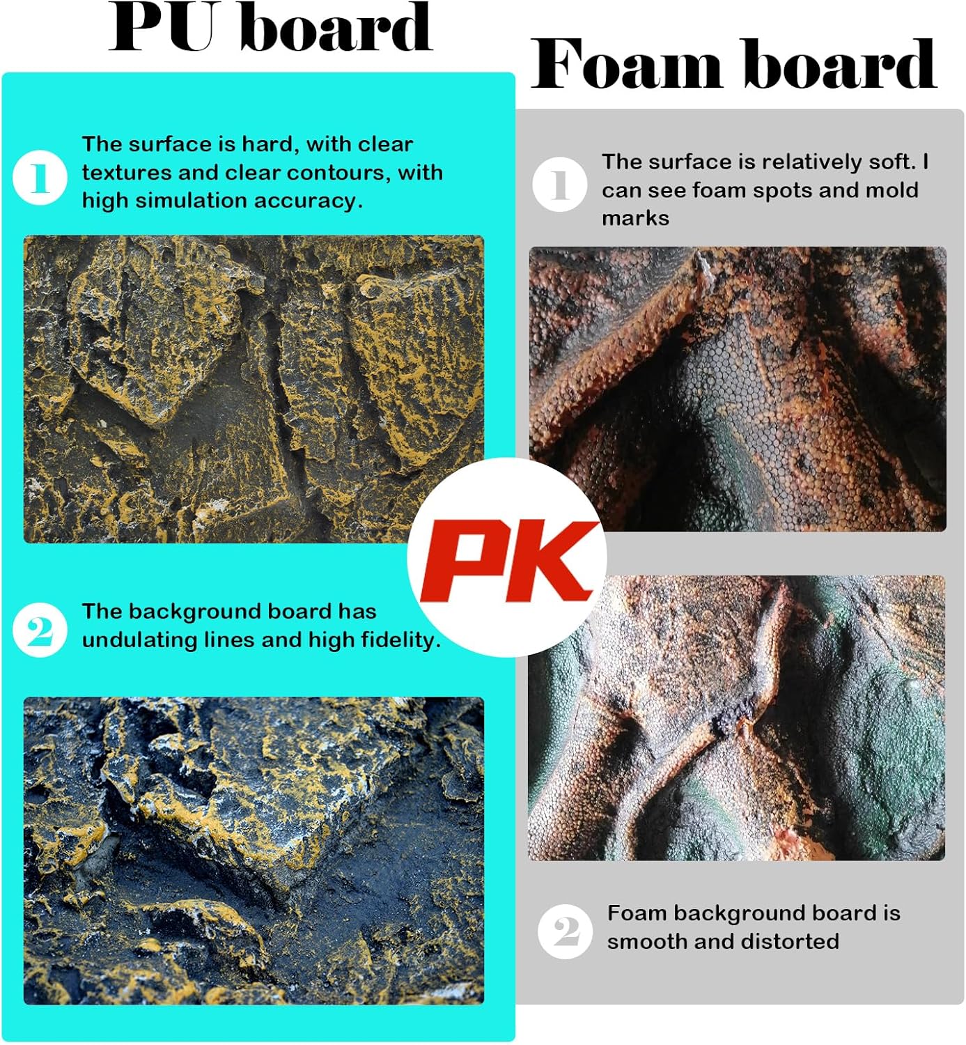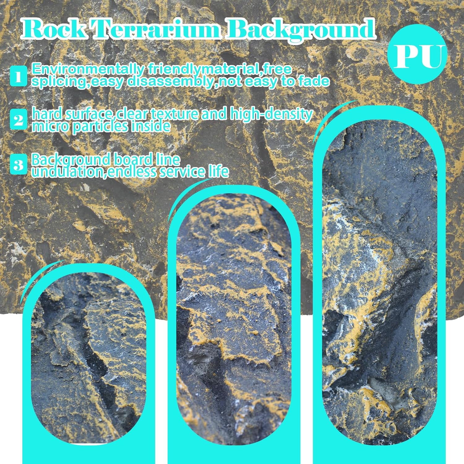 - High Quality Material:Reptile tank background is made of PU material, hard surface,clear texture and high-density micro particles inside,has high simulation and durability,and does not affect the PH value,high hardness natural stone patterns,background board line undulation,endless service life,rock terrarium background no toxic and harmless,environmentally friendly material,free splicing,easy disassembly,not easy to fade,uneven surface and fine texture,suitable natural habitat for any reptile