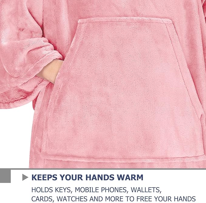 - Large Pocket & Care-Free Wash: The wearable blanket has a large front pocket to keep your hands warm and store phones, snacks, and controllers, keeping everything you need at your fingertips. It is machine washable in cold water and can be tumble dried separately at a low temperature.