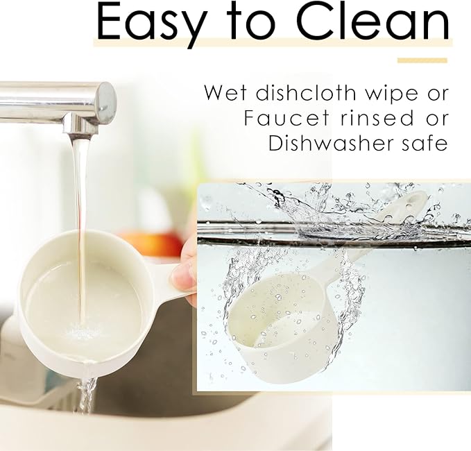 - [ HIGH QUALITY MATERIAL ] - Unlike fragile plastic scoops, our dog food measuring scoops are made of high quality melamine. The material is sturdy and durable, not easy to deform or break, ensuring long-lasting use.