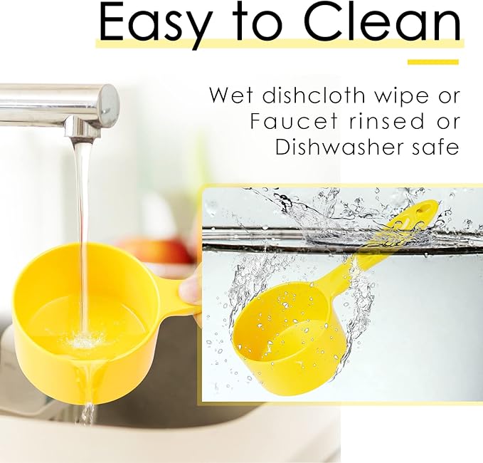 - [ HIGH QUALITY MATERIAL ] - Unlike fragile plastic scoops, our dog food measuring scoops are made of high quality melamine. The material is sturdy and durable, not easy to deform or break, ensuring long-lasting use.