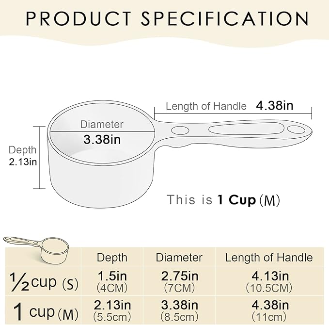 - [ 1 Cup Capacity ] - The pet food scoop measures 1 cup capacity (3.52 oz). It is used to measure pet food proportion exactly to make a standard diet.