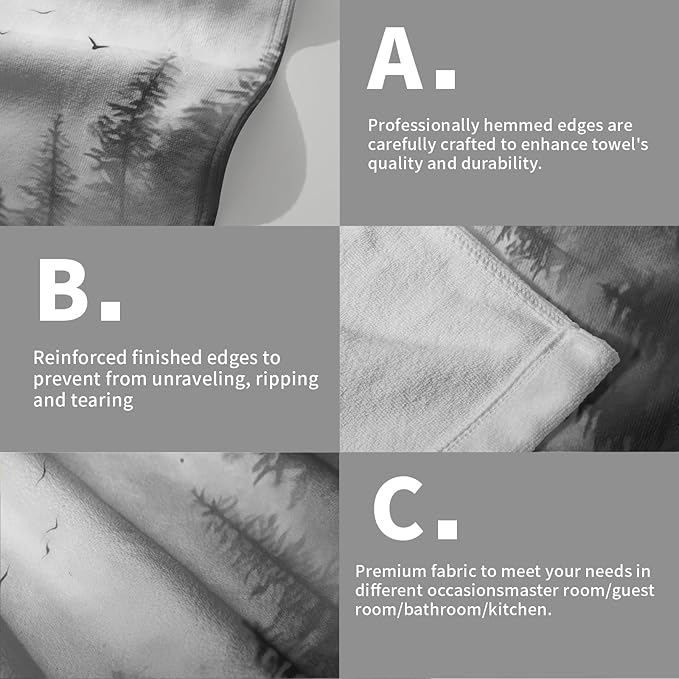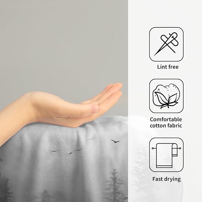 - 【Perfect Gift】This foggy forest hand towel makes a great addition to any space. It also a perfect gift for your family and friends. Great hostess gifts, housewarming gifts, or birthday gifts!