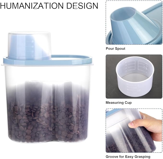 - [THE SHAPE OF FOOD STORAGE]- Designed for easy access to pet food for pouring.And the translucent body makes food be checked at a glance.