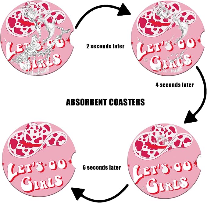 Car Cup Holder Coaster - Cow Hat Let's go Girl Women Absorbent Ceramic Coaster, Car Coasters for Cup Holders, Auto Accessories for Women & Men, Pack of 2