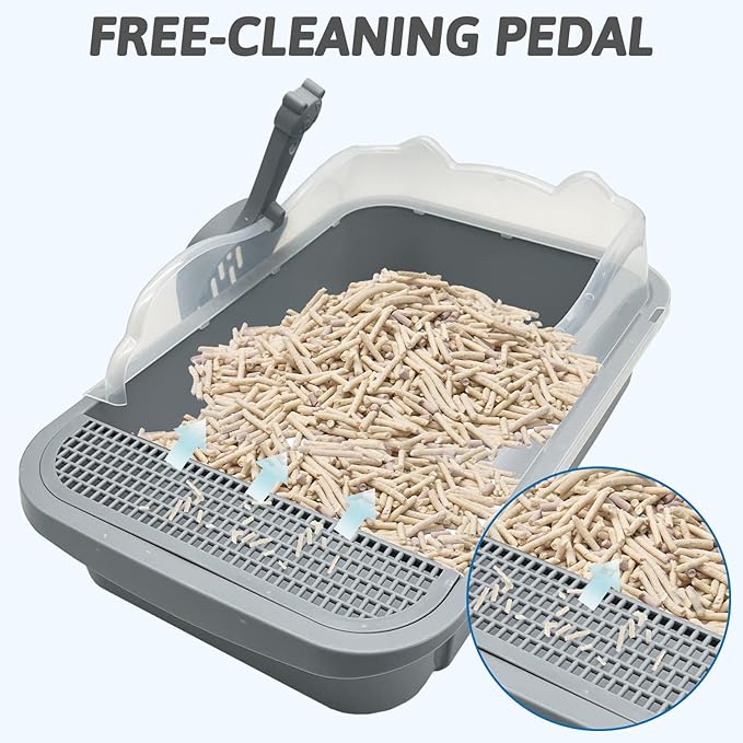- Sifting Litter Pedal: Wider; leak-proof pedal releases litter caught in your cat's paws after toileting, sifter is recycles the litter effectively to keeps the floor clean