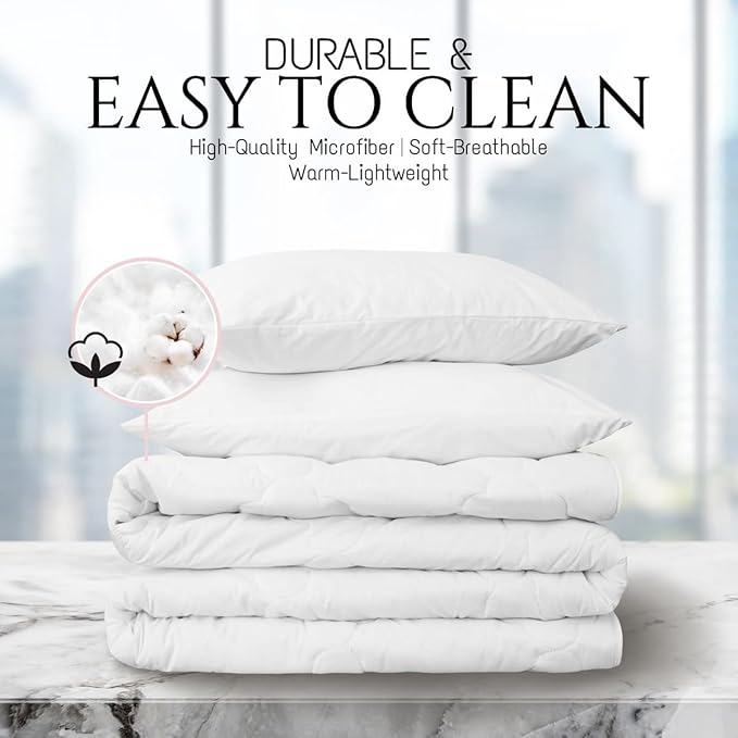 - Material: Polyester Microfiber. High quality polyester with ultra soft microfiber inner fill. Soft, breathable, hydrophilic, cozy, fade-resistant and easy to wash, ensuring your great sleep and comfort throughout the all year.