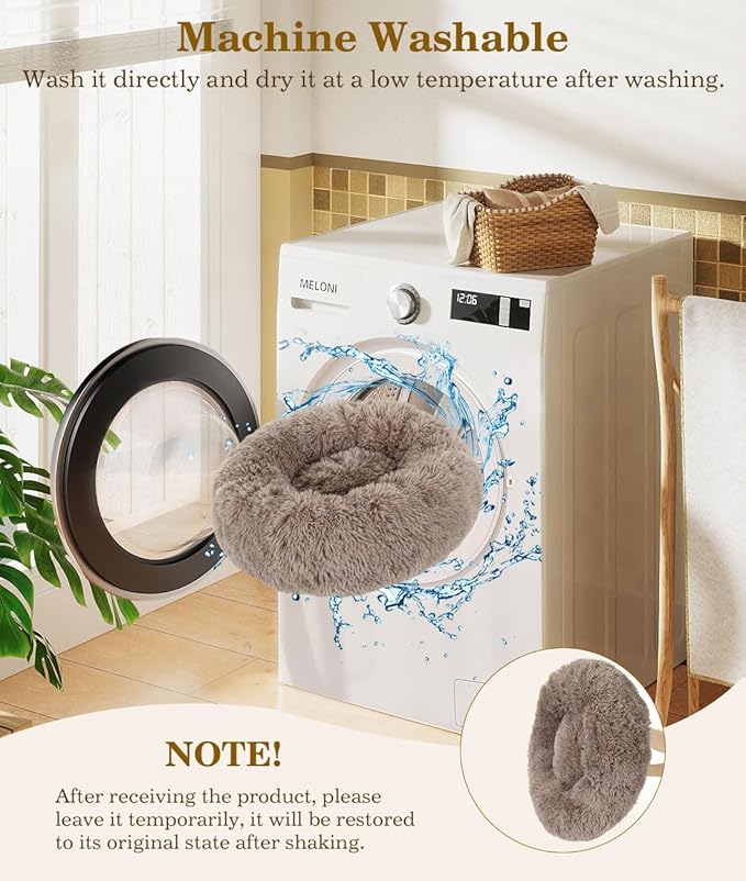 - 【Easy Care】Features with easy to wash. Just need to put the whole dog bed in the washing machine and dry it at a low temperature after washing. Separate washing and drying is recommended and you will get a new round fluffy dog bed. Create a comfortable sleeping environment for your pet at any time. Note: After receiving the product, please leave it temporarily, it will be restored to its original state after shaking.