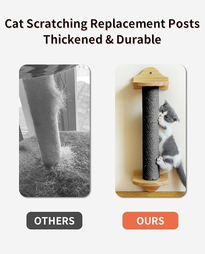 - Thickened Durable: Cat tower replacement posts refills are made of sturdy cardboard tube and wrapped with jute rope, they are durable. All the posts are covered with jute which endure each aggressive scratch