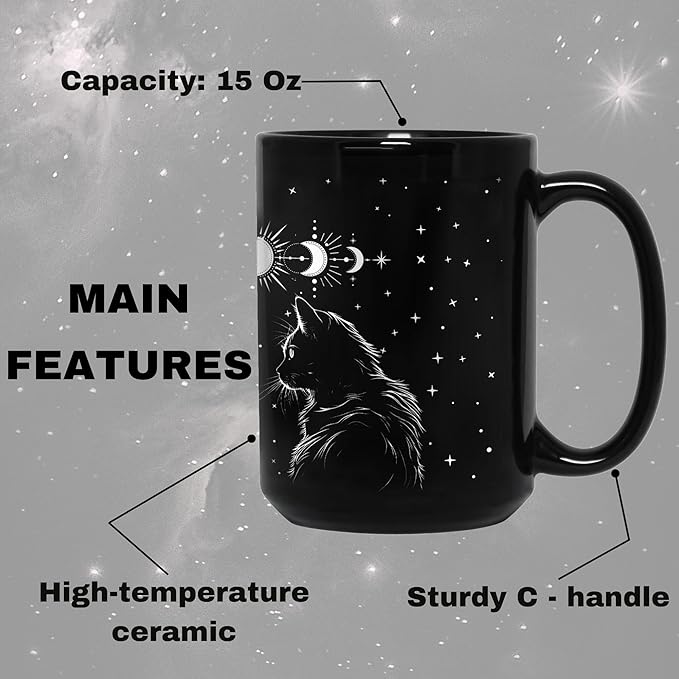 - Friendly design - The C-handle is designed to fit comfortably in your hand, allowing you to hold the black coffee mug with ease and safety. Additionally, with a size of 15oz, cat coffee cup provides ample capacity for holding and enjoying your favorite beverages.