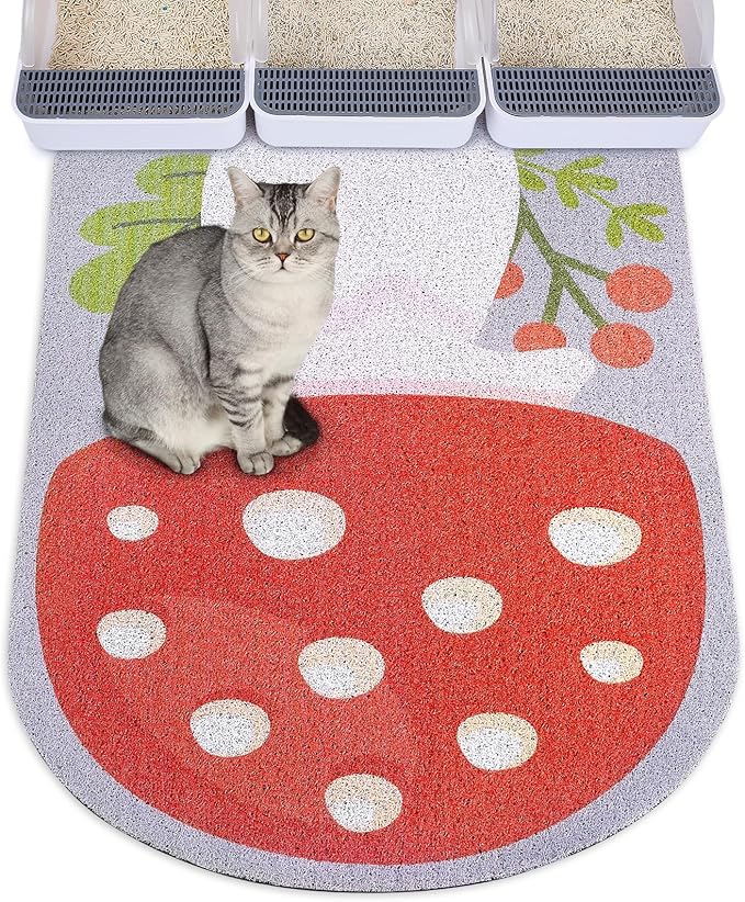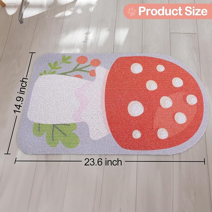 Bienbee Cat Litter Mat, 40 x30in Litter Mat Litter Trapping Mat Easy to Clean, Litter Box Mat with Bottom, Unique Graphic Design Cat Mats for Litter, Mushroom XL