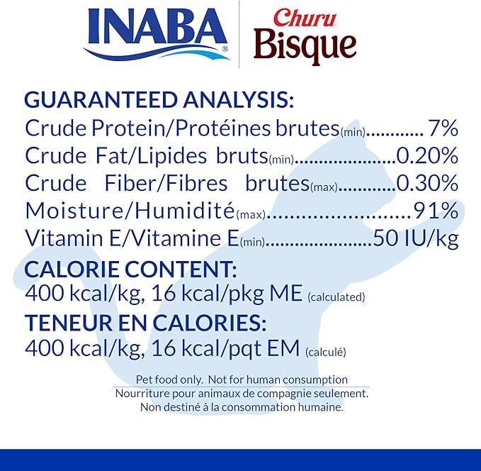 INABA Churu Bisque for Cats, Creamy Lickable Purée Side Dish with Vitamin E, 1.4 Ounces per Pouch, 12 Pouches, Tuna & Chicken Variety