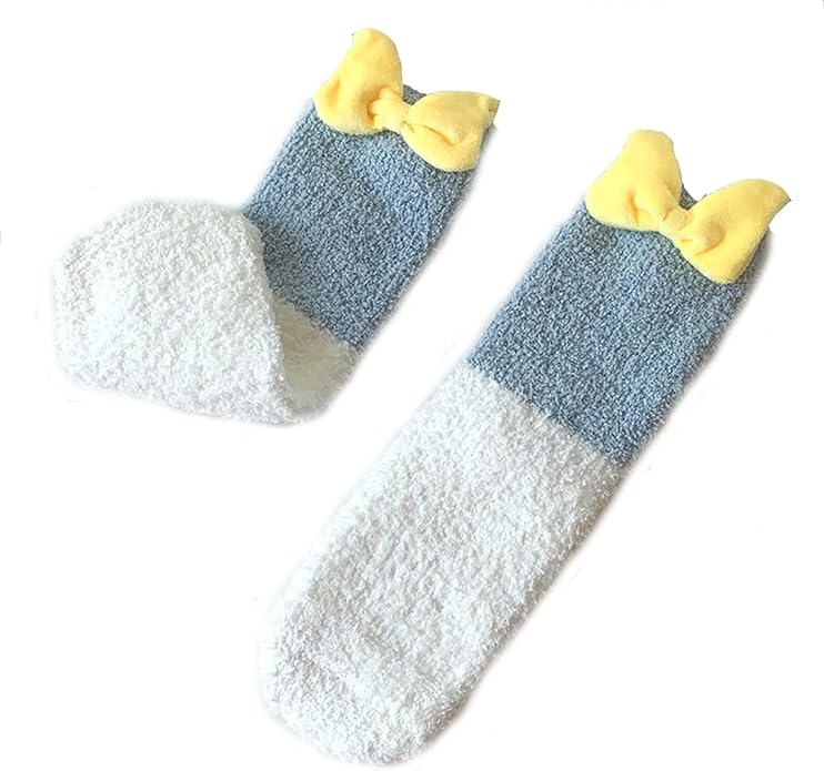 • 【One Size】One size fits most. Our cute fuzzy socks for women suitable for women shoe size 5-9. High elastic fabric, above ankle, will not fall off or compress your legs, Comfort fluffy sleeping socks, giving you wonderful experience for everyday activities, even during sleep. The super thick fleece socks fit for most feet of women and teen girls.