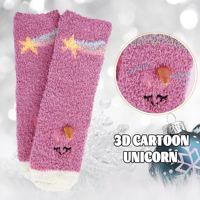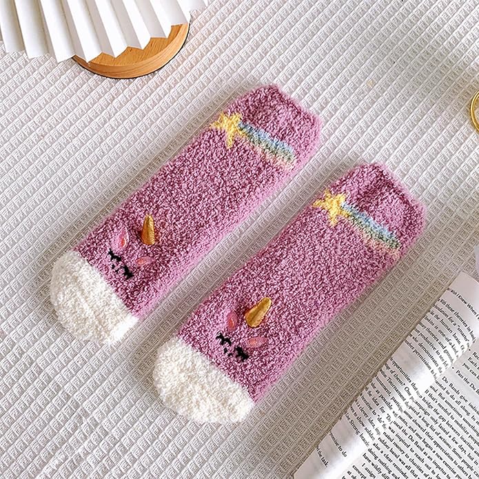 - 【Adorable Design】These warm plush socks for teen girls, cute animal pattern and cartoon character design,such as princess bow design, unicorn, crown. Except the adorable appearance, the fluffy slipper socks inside design is also perfect, no extra thread, not stifling or tight in the toes.