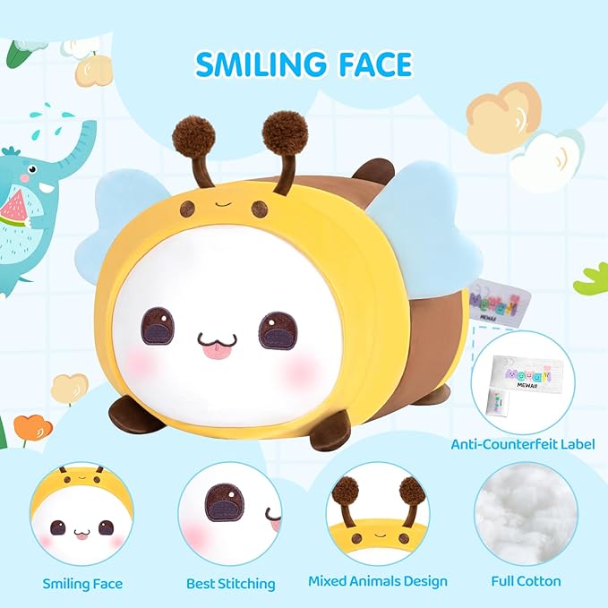 - Super Soft for Cuddling - Mewaii cat bee plush pillows use squishy fabric, soft cotton, fine embroidery and the best stitching to offer you the best cuddling sense and help you feel comforted after the stressful days at work or study.
