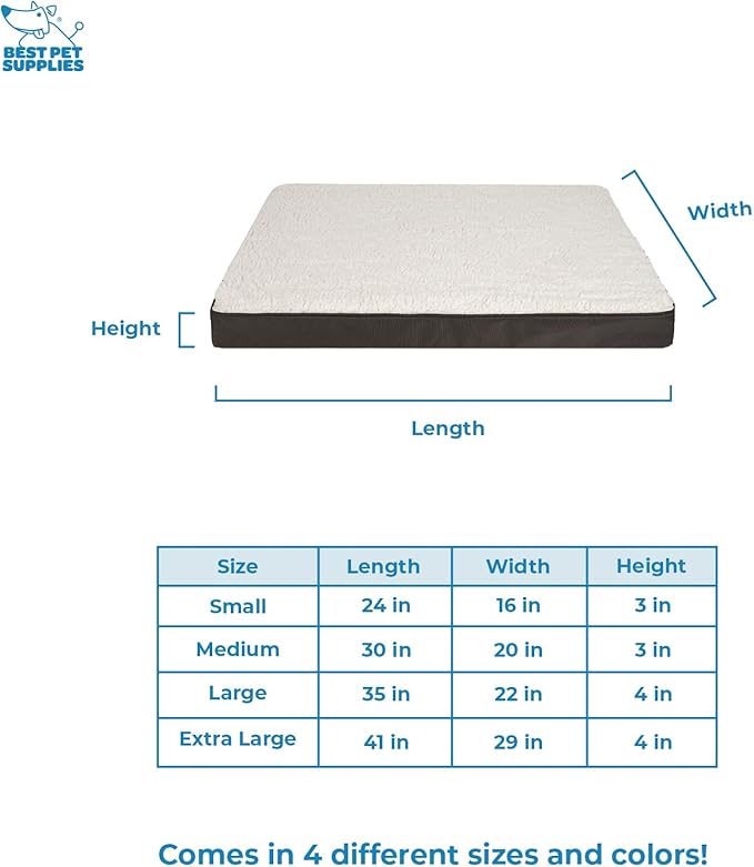 Best Pet Supplies Cute Dog Crate Mat Flat Bed with Waterproof Exterior, Thick Orthopedic Egg Foam Mattress, and Soft Sherpa Fleece Cover for Small, Medium, and Large Breeds - Brown, 24X16X3