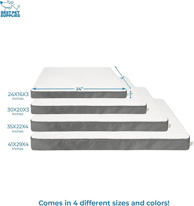 Best Pet Supplies Cute Dog Crate Mat Flat Bed with Waterproof Exterior, Thick Orthopedic Egg Foam Mattress, and Soft Sherpa Fleece Cover for Small, Medium, and Large Breeds - Gray, 41X29X4