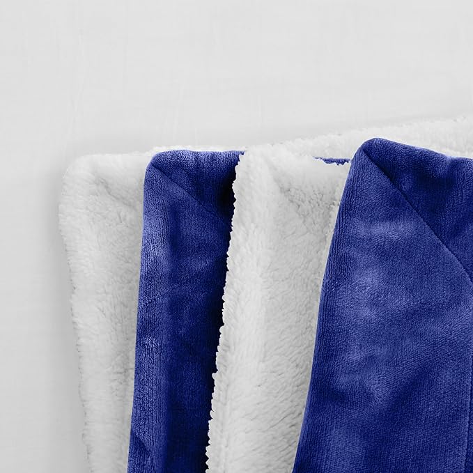 Elegant Comfort Reversible and Ultra-Plush Flannel Fleece Sherpa Throw- Lightweight Soft and Cozy- All Season Decorative Throw, Perfect for Lounging, 50 x 60 inches, Royal Blue