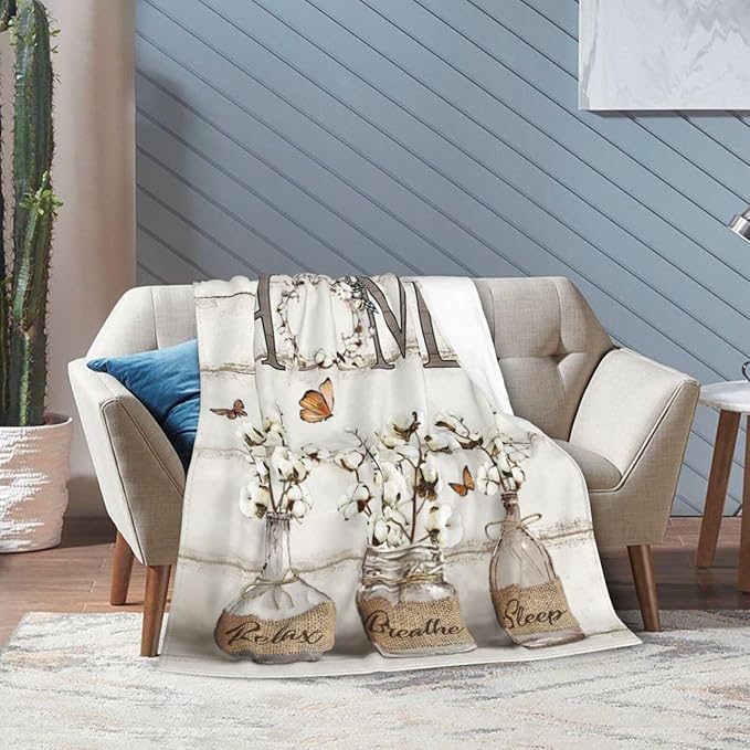 Farmhouse Floral Blanket for Women Girls Ultra Soft Cozy Cotton Flower Throw Blanket Fleece Fuzzy Plush Bedding Blanket Flower Gifts for Women Girls Kids Adults Couch Sofa 80"x60"