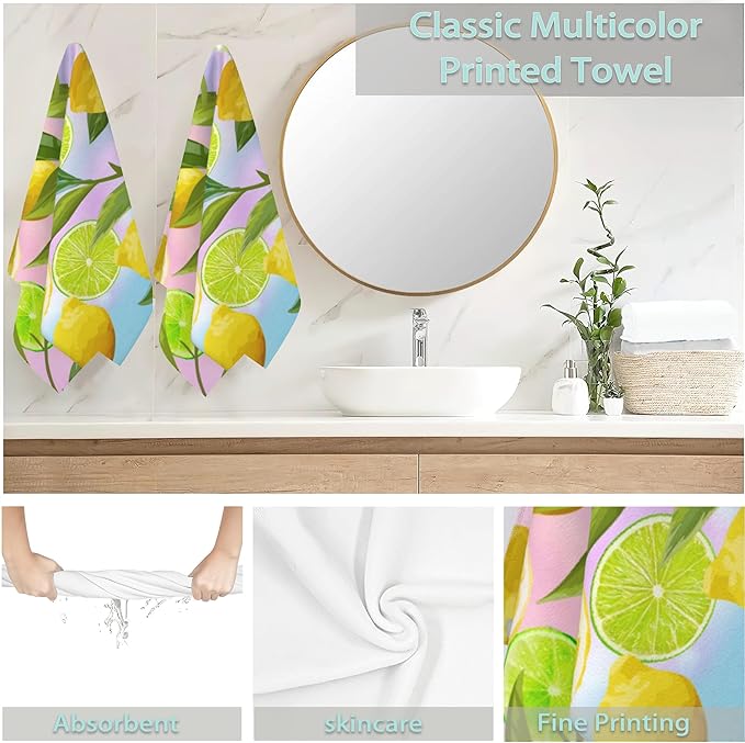 2 Pack Hand Towels for Bath,Yellow Green Lemons Decorative Towels Highly Absorbent Soft Towels for Bathroom Beach Kitchen Spa Gym Face Towel 14x28 Inch