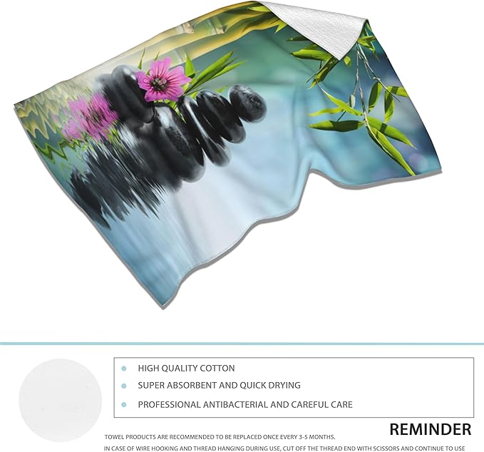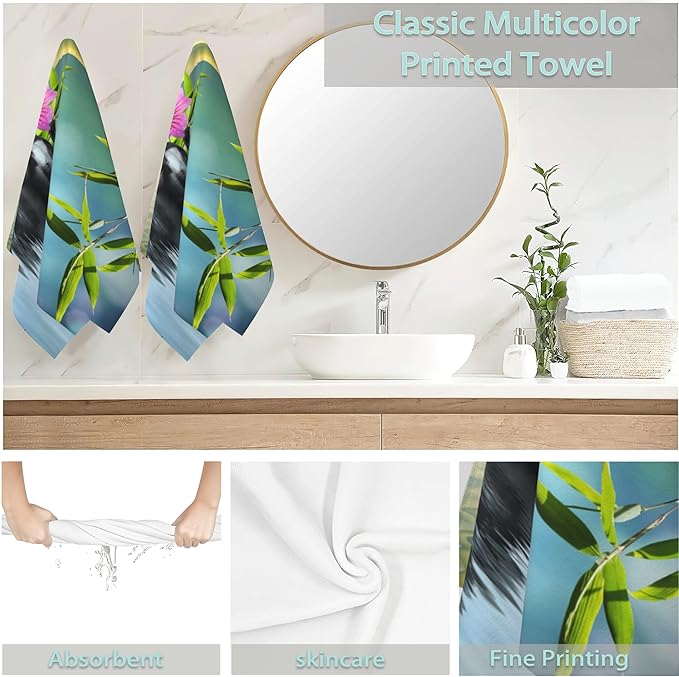 Zen Spa Hand Towels Set of 2,Green Bamboo Flower Soft Fingertip Bath Towel Small Face Washcloths Decor Kitchen Towel for Hotel Spa Gym Sport 28x14in