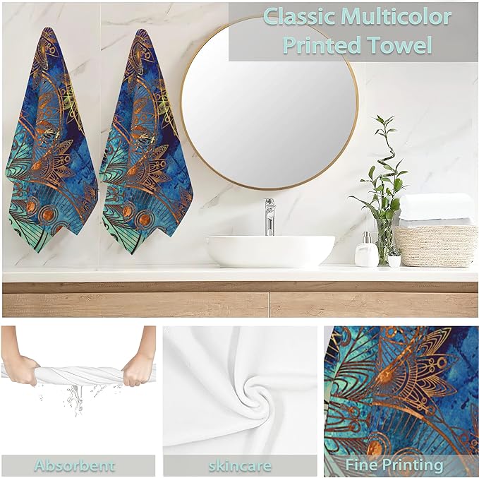 2 Pack Hand Towels for Bath,Golden Art Damask Floral Decorative Towels Highly Absorbent Soft Towels for Bathroom Beach Kitchen Spa Gym Face Towel 14x28 Inch