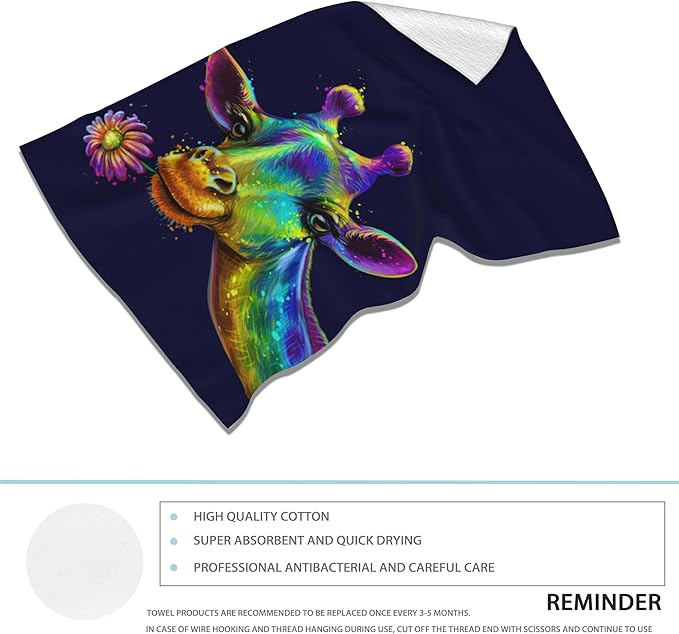 Giraffe Hand Towels Set of 2 - Colorful Fingertip Polyester Cotton Soft Bath Towels for Bathroom, Kitchen, Hotel, Spa - 14"X28"