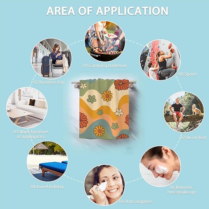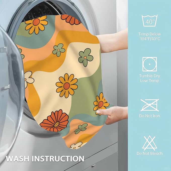 2 Pack Hand Bath Towel,Retro 70s Groovy Flower Hippie Fingertip Towel Bathtub Decorative Bath Towel Bathroom Kitchen Towel Set Highly Absorbent SPA Gym Towels 14x28 Inch