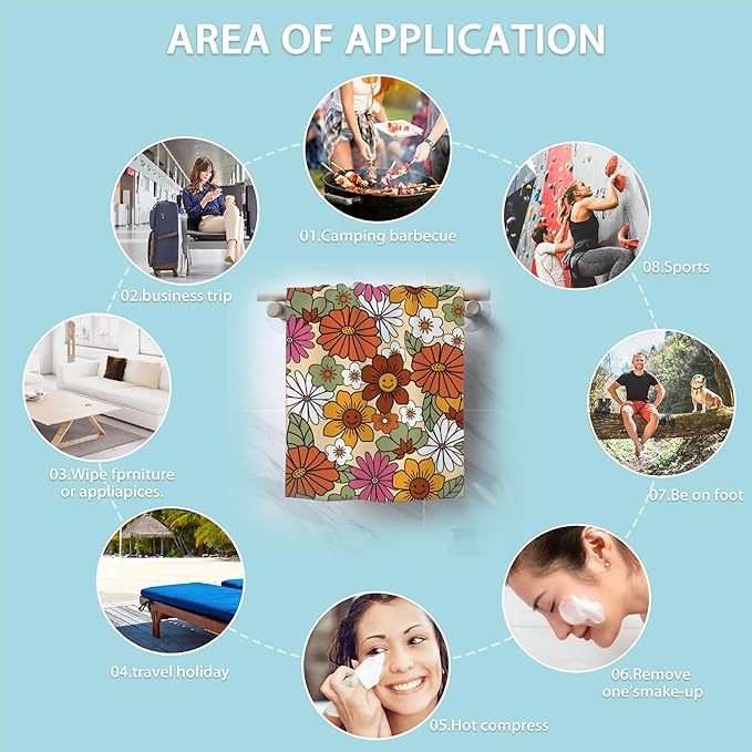 2 Pack Hand Bath Towel,70s Vintage Hippies Flowers Fingertip Towel Bathtub Decorative Bath Towel Bathroom Kitchen Towel Set Highly Absorbent SPA Gym Towels 14x28 Inch