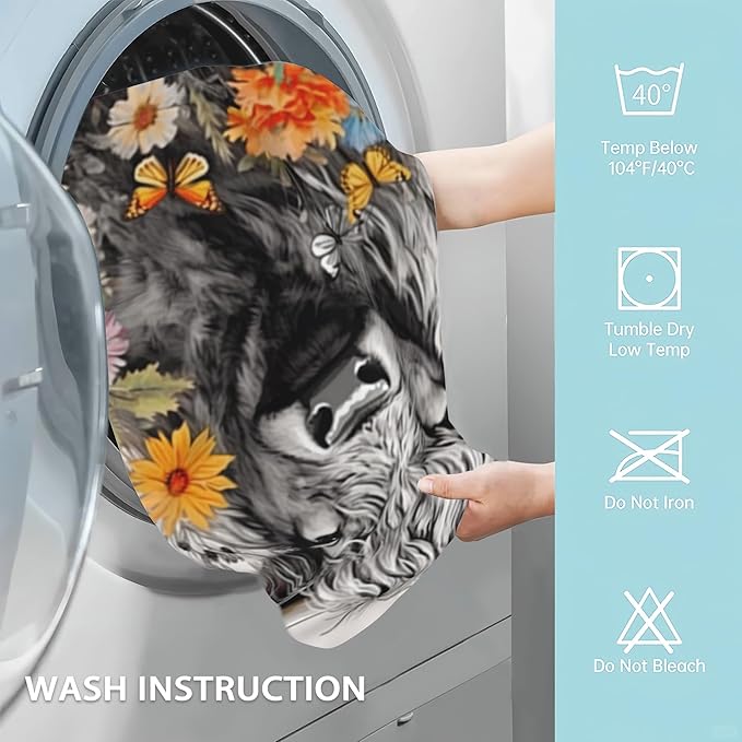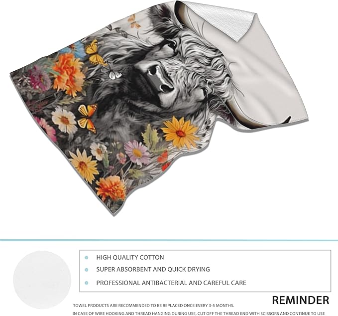 Highland Cow Hand Towels Set of 2,Daisy Flower Soft Fingertip Bath Towel Small Face Washcloths Decor Kitchen Towel for Hotel Spa Gym Sport 28x14in