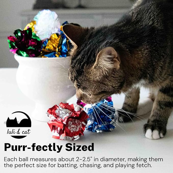 - High-Quality Material - Luli & Cat brand foil crinkle balls use slightly thicker and higher-quality foil than the cat ball toy you found elsewhere. This means they'll last longer, which is a win for you and your feline.